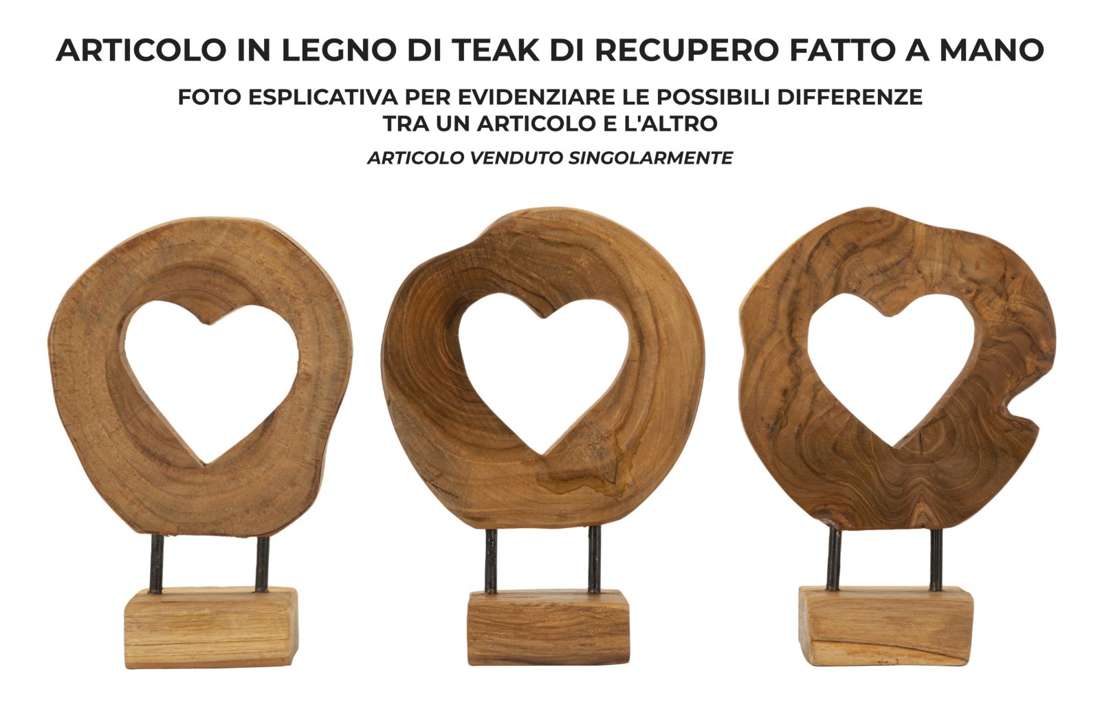 SCULTURA CUORE IN TEAK RIC. CM 15X10X35 MIN 2 (PEZZI UNICI - NON RIP. IN SERIE)
