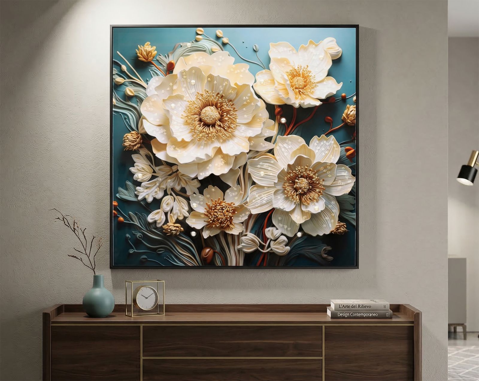 DIPINTO SU TELA LACCATO NARCY -B- C/CORNICE CM 82X4X82
