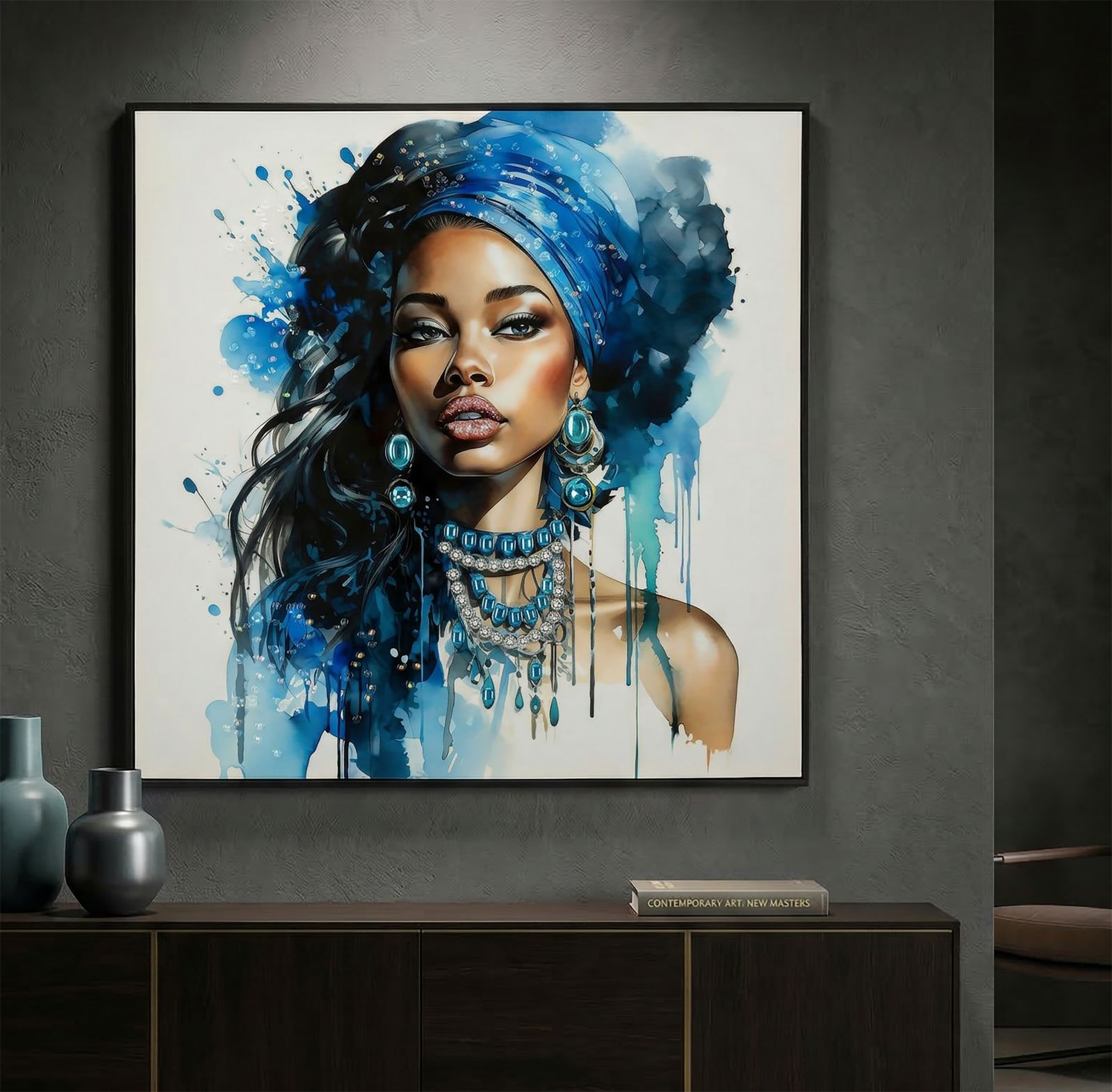 DIPINTO SU TELA LACCATO ALTEA -B- C/CORNICE CM 82X4X82