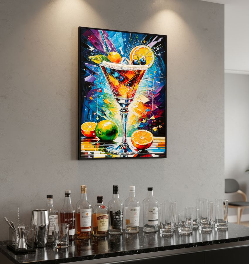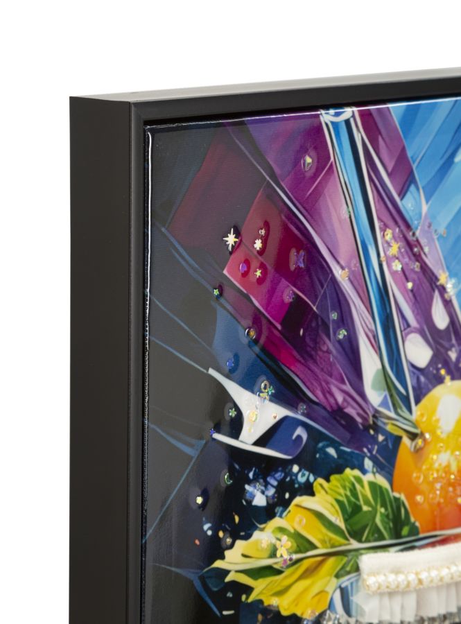STAMPA DECORATA SU TELA LACCATA C/CORNICE COCKTAIL -B- CM 62X3,5X92