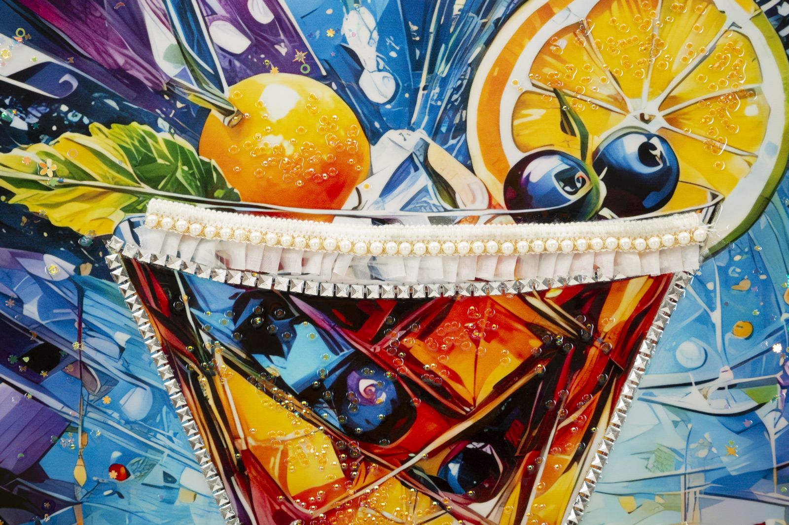 STAMPA DECORATA SU TELA LACCATA C/CORNICE COCKTAIL -A- CM 62X3,5X92