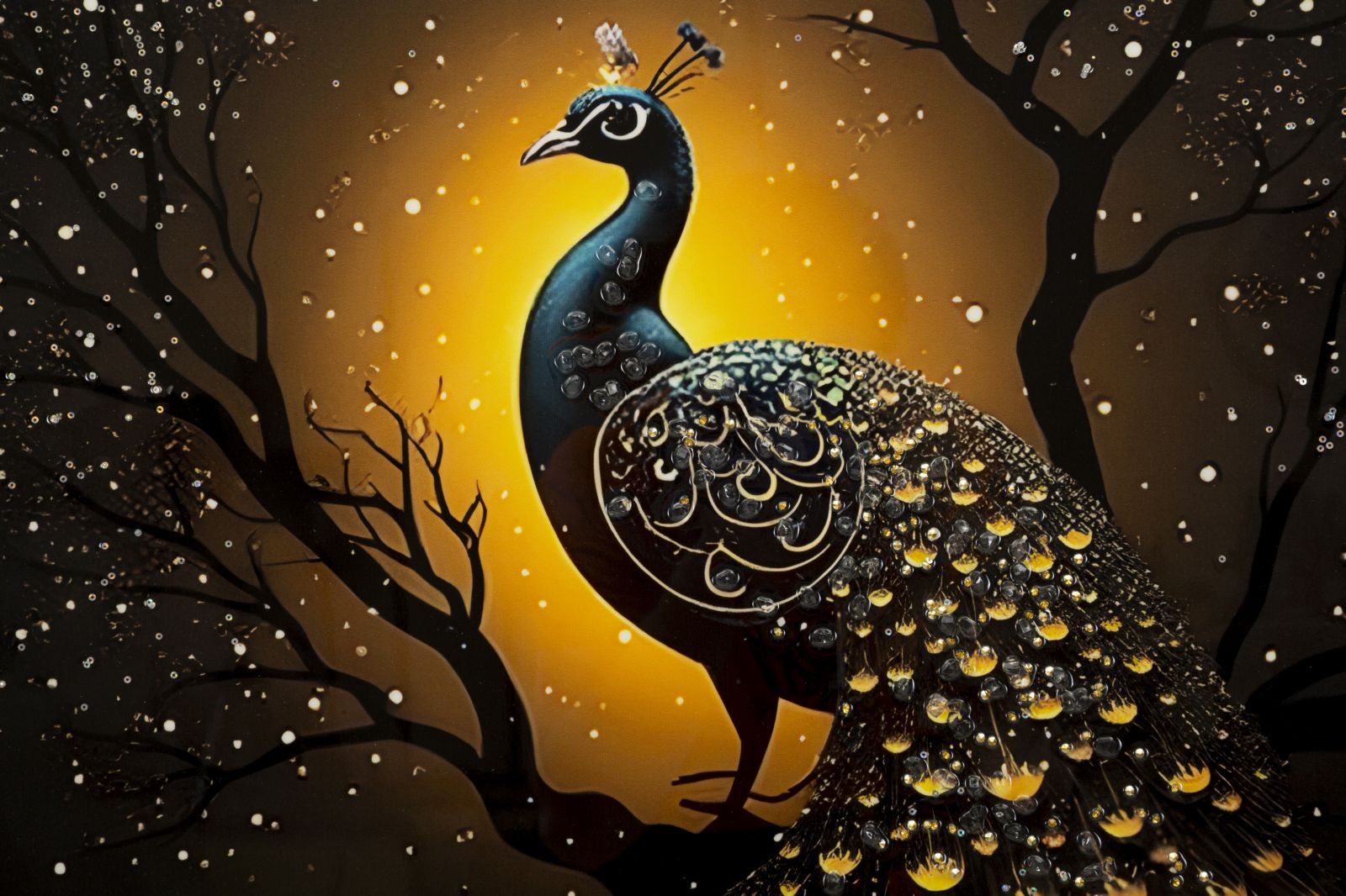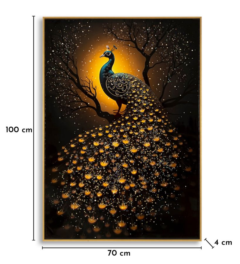 STAMPA DECORATA SU TELA LACCATA C/CORNICE PEACOCK CM 70X4 X100