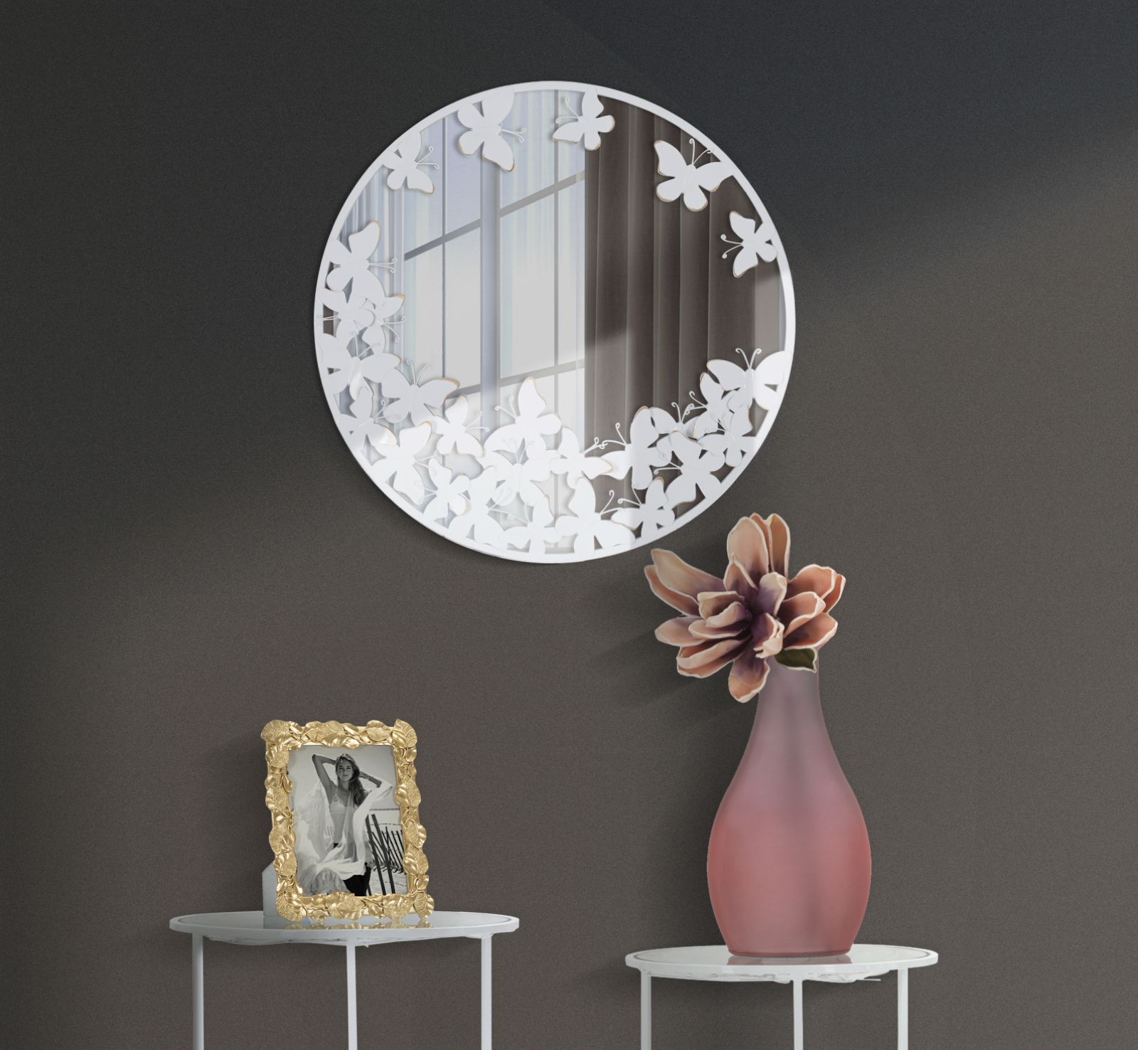Home FERRO SPECCHIO ROTONDO WHITE BUTTERFLY CM 62,5X2,3 (MISURA INTERNA CM Ø 60)