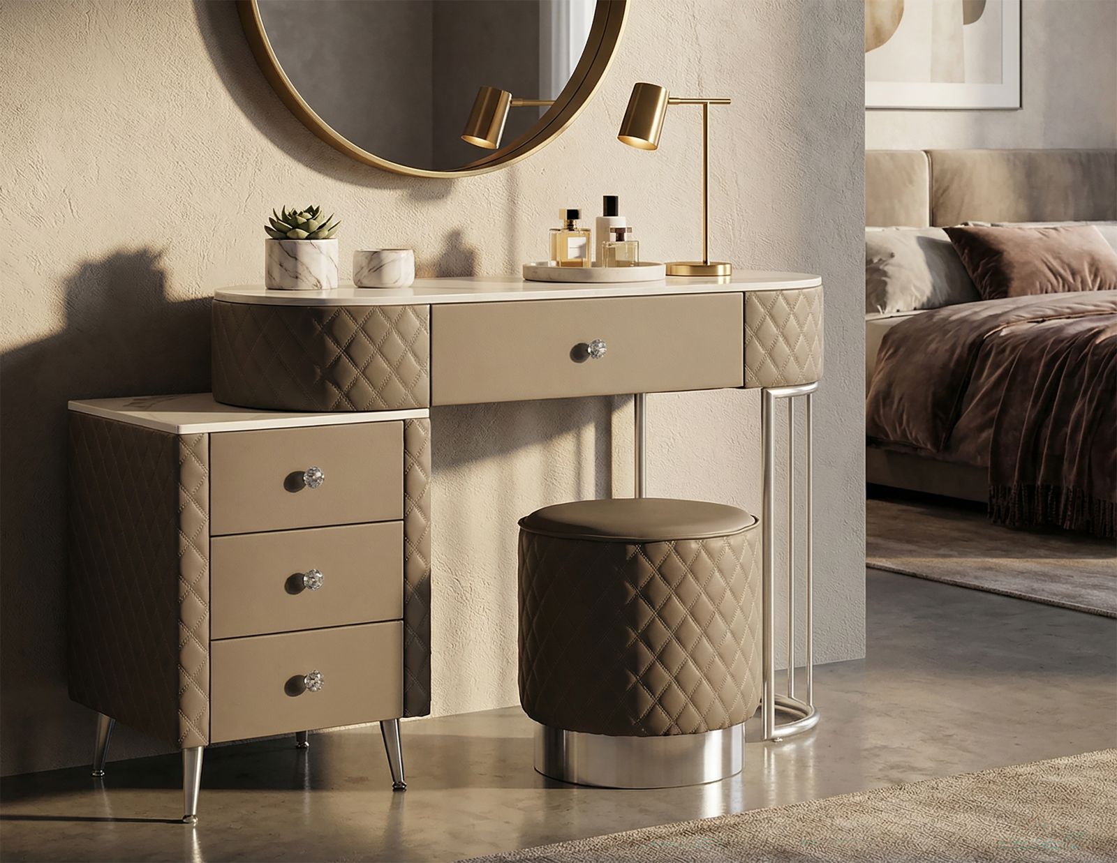 Recensisci per primo “TOELETTA SHARON GRIGIA C/PUFF GAMBE ARGENTO CM 120X40X75 (MISURA PUFF Ø36X39)” Annulla risposta