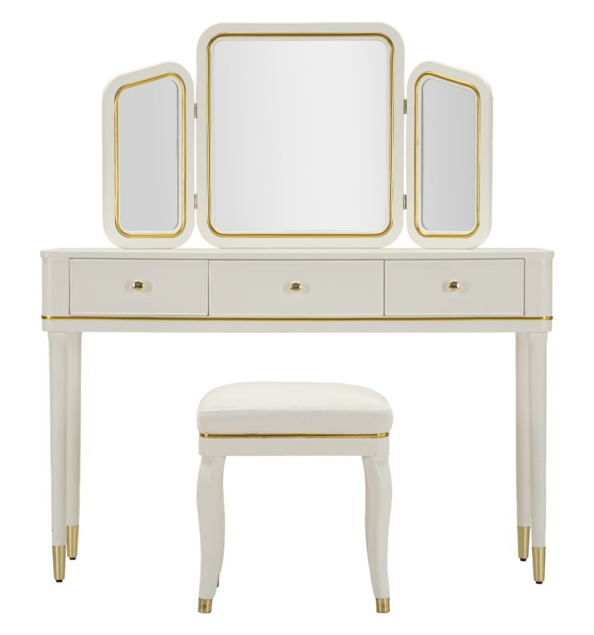 TOLETTA CAMILLE CON SPECCHIO E SGABELLO BIANCA CM 120X37X79-104X2,5X56-44X34X48