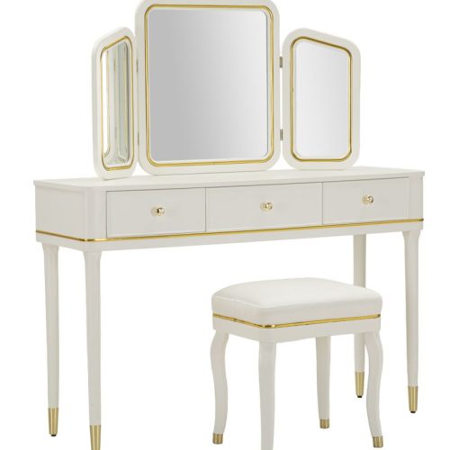 TOLETTA CAMILLE CON SPECCHIO E SGABELLO BIANCA CM 120X37X79-104X2,5X56-44X34X48